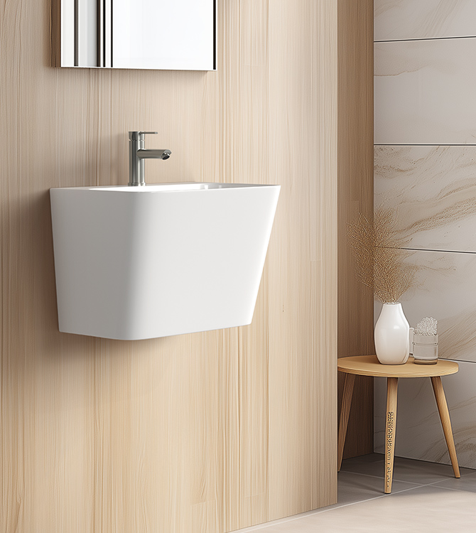 • 트렌디한 욕실 공간에 어울리며, 고급스러운 디자인에 중점을 둔 평면붙임 세면기입니다.